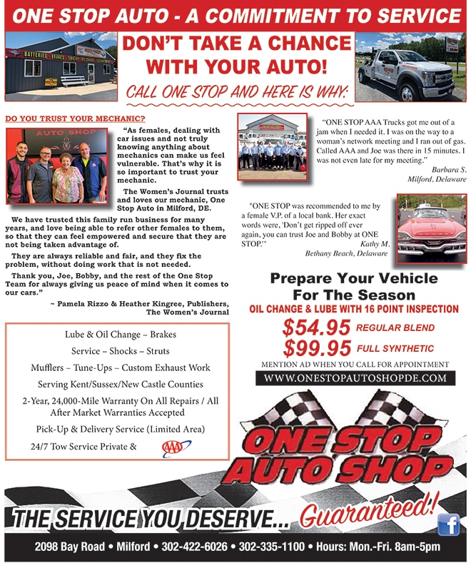 The Women’s Journal trusts & loves our mechanic, One Stop Auto in Milford, DE.
