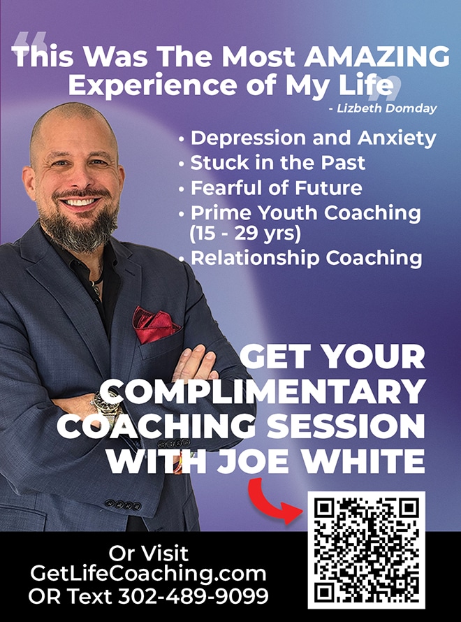 For over 25 years, Joe White has been a leading force in personal and professional transformation, pioneering Delaware’s first life coaching practice, Get Life Coaching. His journey began with overcoming a near-fatal drug and alcohol addiction 30 years ago, a turning point that ignited his passion for helping others.