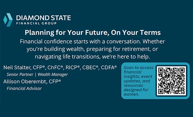 Neil Stalter, CFP®, ChFC®, RICP®, CBEC®, CDFA® and Allison Oberembt, CFP® are financial advisors with Diamond State Financial Group, working together as a team to provide comprehensive financial planning. Neil, a Senior Partner and Wealth Manager, brings over a decade of experience, ensuring continuity and long-term guidance for their clients. Together, they specialize in helping business owners, women, and pre-retirees navigate wealth management, retirement strategies, and generational planning with confidence.